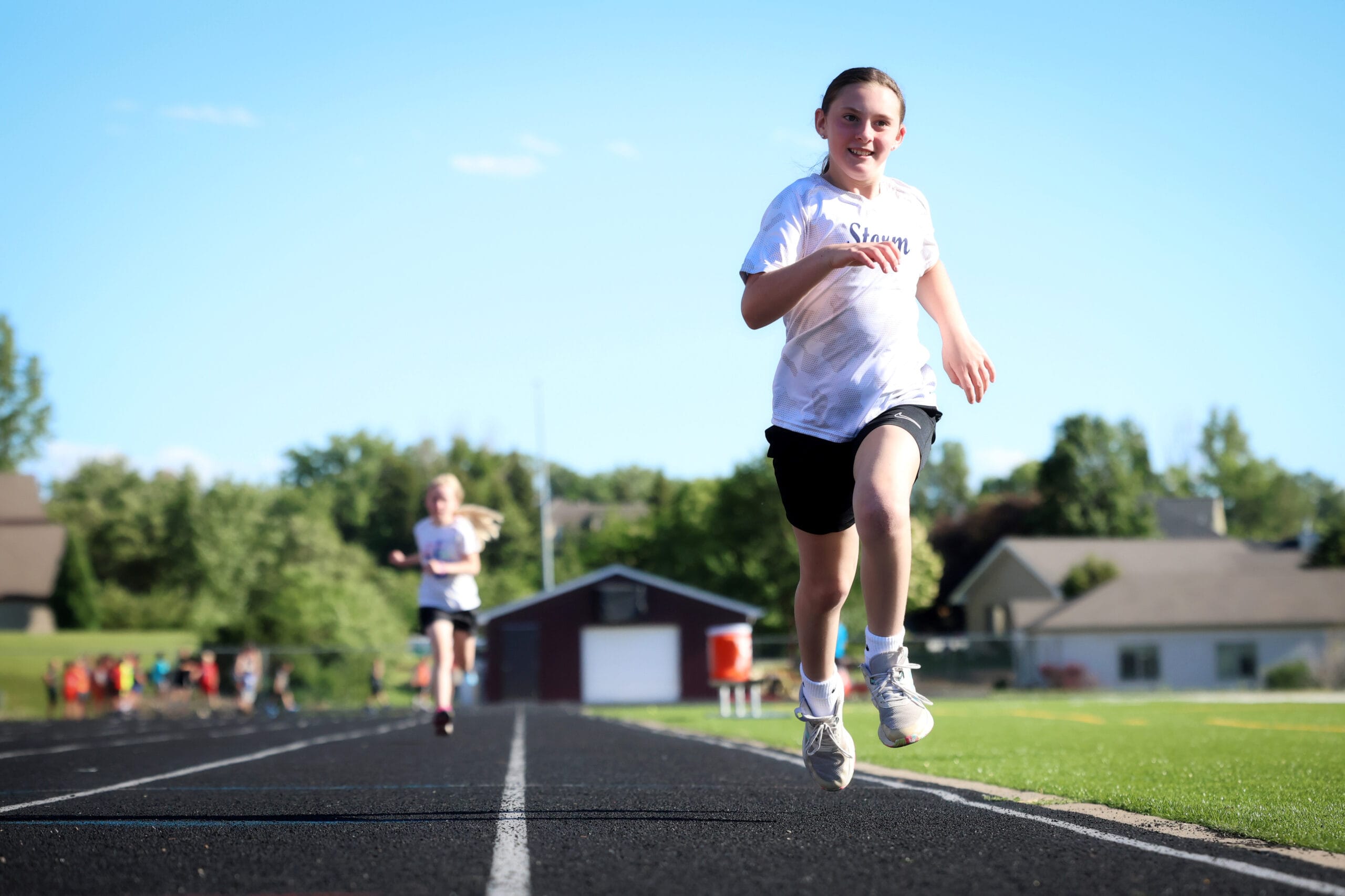 The spring track program is for girls and boys in grades 3, 4, 5, and 6. The 2025 meets will be held on May 5, 12, and 19 at 6:30pm at Duane Carlson Stadium. These meets will be running events only.